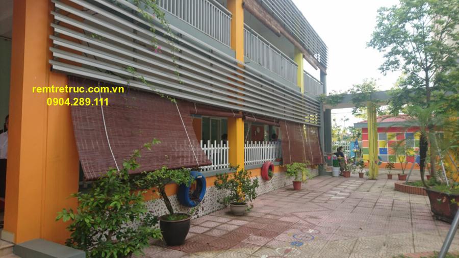 Thi công lắp đặt mành tre che nắng trường mầm non Ngôi Nhà Ánh Sáng Đường Bát Khối Long Biên Hà Nội