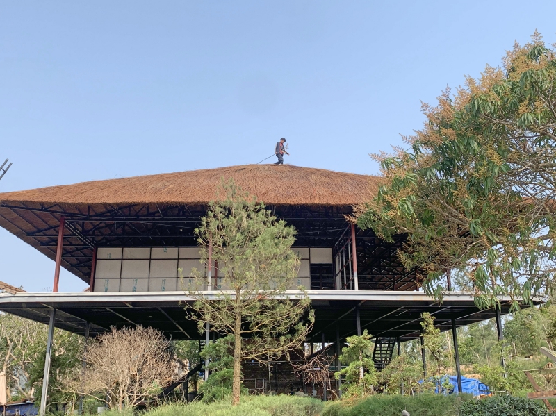 Công trình nhà tre tầm vông uốn cong hình nấm cho quán cà phê tại Thường Tín